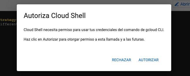 Dit is die pop-up wat verskyn wanneer gcloud projects list vanaf die Cloud Shell (as attacker) uitgevoer word, gesien in die gebruiker se blaaieressie: