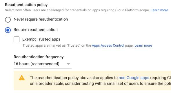 ```bash curl -s --data client_id=Die geldigheid van refresh tokens kan bestuur word in Admin > Security > Google Cloud session control, en standaard is dit op 16h gestel alhoewel dit ingestel kan word om nooit te verval nie: