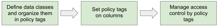Wanneer ’n gebruiker probeer om kolomdata tydens ’n navraag te bekom, kontroleer BigQuery die kolom beleidsmerk en sy beleid om te sien of die gebruiker gemagtig is om toegang tot die data te hê.