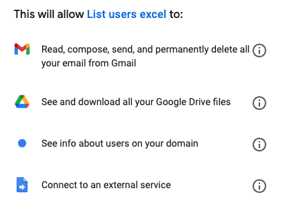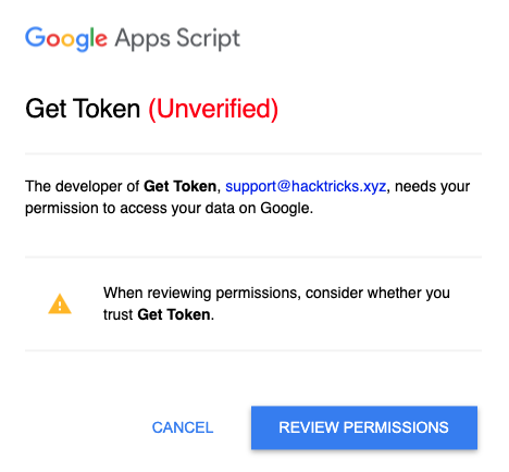 Dit beteken ook dat die App Script vertrou sal word deur die Workspace omgewing van die skepper van die dokument.
