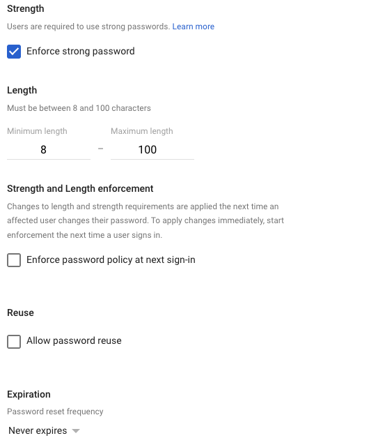 - Εάν οι άνθρωποι αποκτούν πρόσβαση στο Workspace μέσω τρίτου παρόχου, αυτές οι απαιτήσεις δεν εφαρμόζονται.