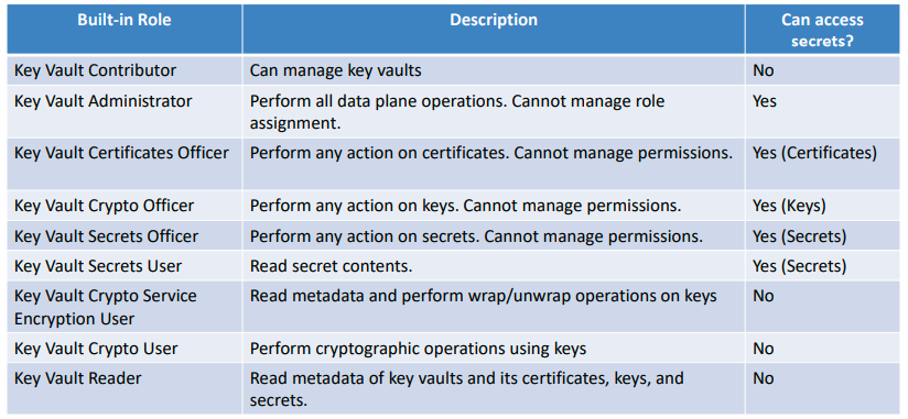 - Możesz znaleźć wszystkie szczegółowe uprawnienia wspierane w https://learn.microsoft.com/en-us/azure/role-based-access-control/permissions/security#microsoftkeyvault