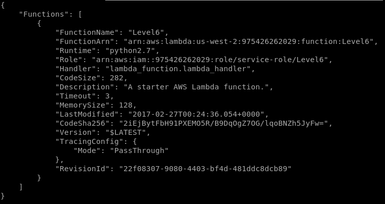 aws --region us-west-2 --profile level6 lambda get-policy --function-name Level6